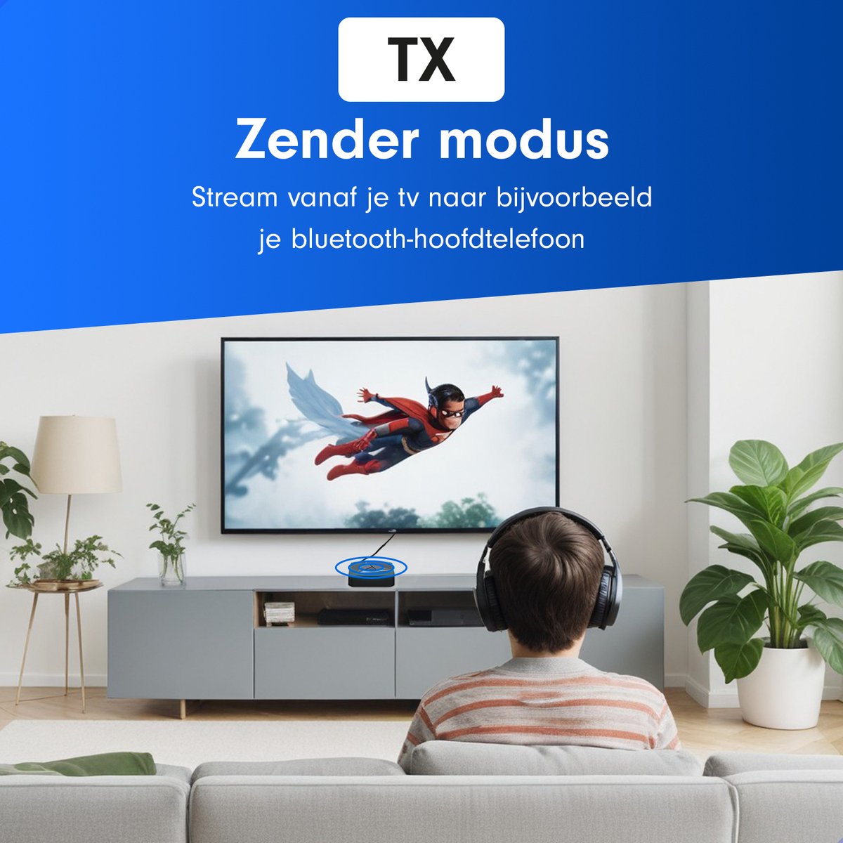 Wil je films kijken, muziek luisteren of gamen zonder anderen te storen? Schakel naar zendermodus en verstuur draadloos audio van je televisie, cd-speler of console.