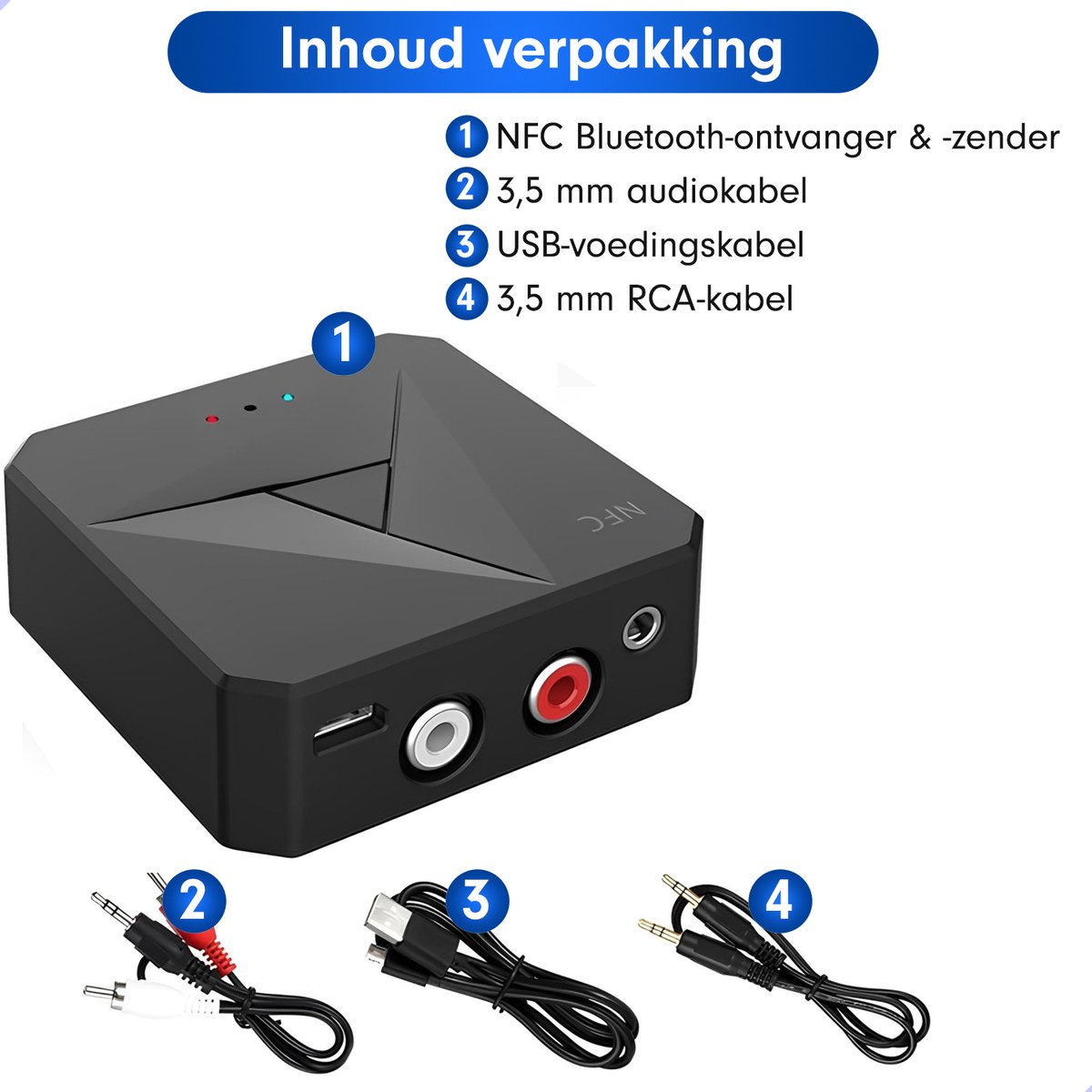 – 1x 2-in-1 Bluetooth 5.0 zender en ontvanger