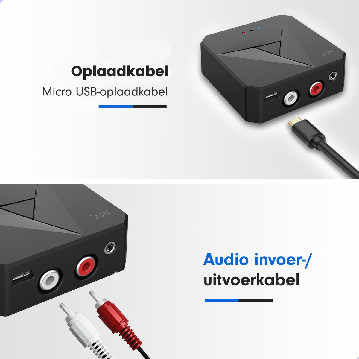 Geen extra kabels of software nodig! Sluit het 2-in-1 Bluetooth-apparaat aan en je bent klaar om audio te ontvangen of te streamen. Vergeet niet een van de meegeleverde kabels aan te sluiten.