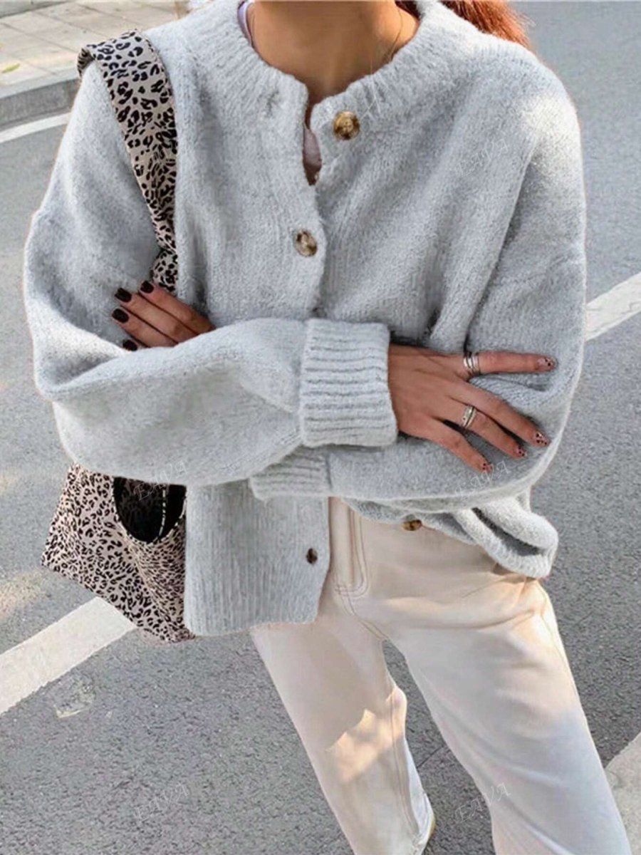 De CozyKnoop oversized trui met ronde hals en knoopsluiting is gemaakt van 100% polyester met een lichte stretch voor extra comfort. De effen stof, lange mouwen en losse pasvorm geven de trui een moderne en ontspannen uitstraling.