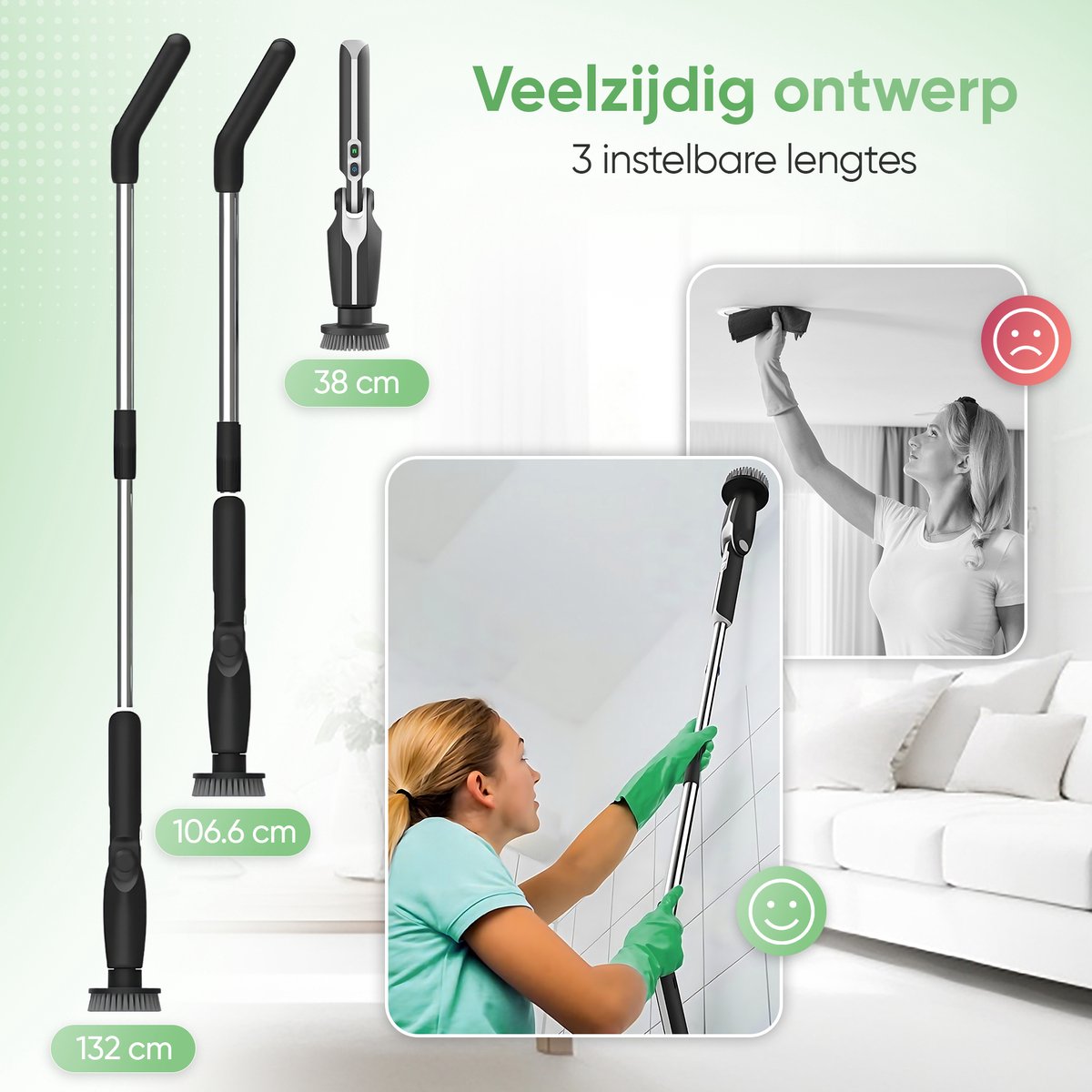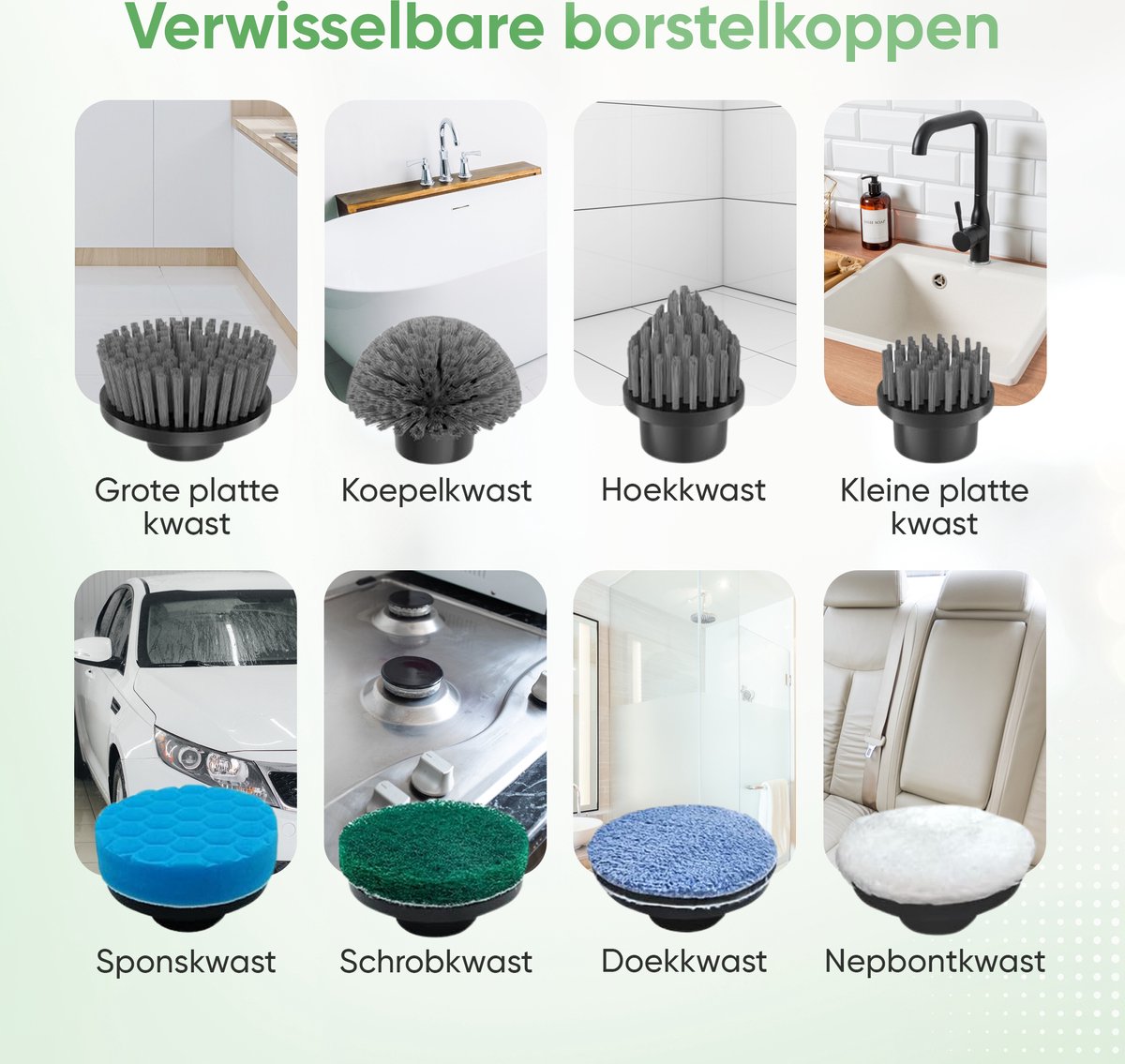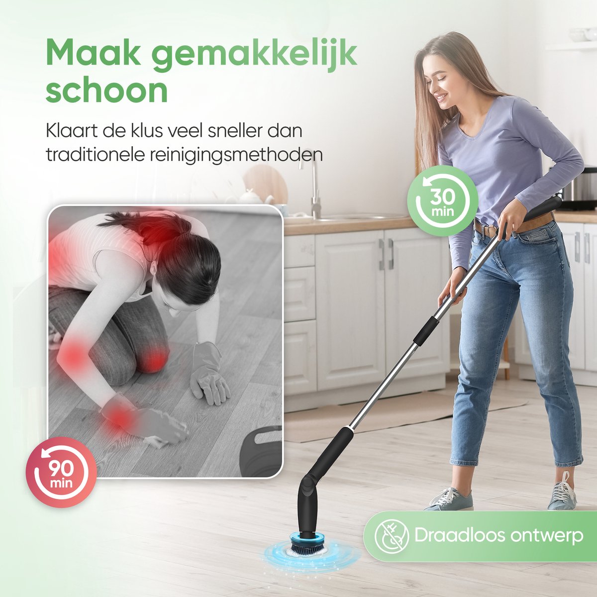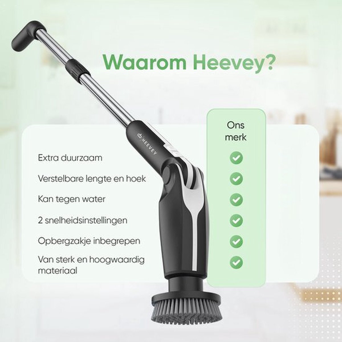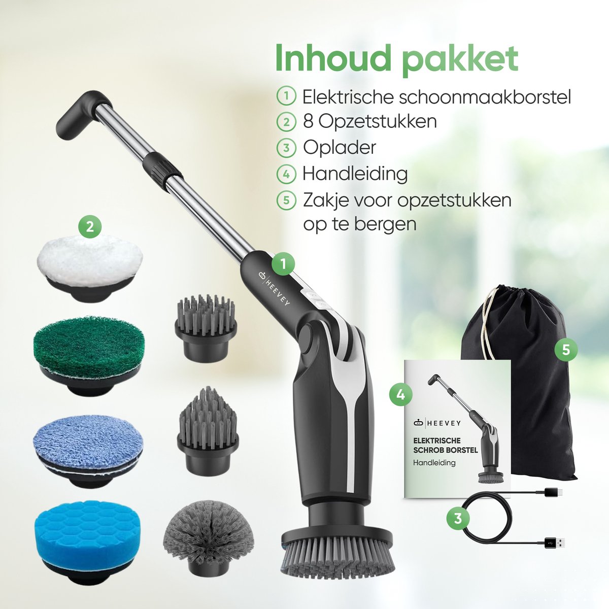 Maak efficiënter je huis schoon dan ooit! Met de Heevey Schoonmaakborstel maak je alles in een mum van tijd schoon, deze hoogwaardige schrobborstel is ontworpen om moeiteloos zelfs de hardnekkigste vlekken en vuil te verwijderen, waardoor je oppervlakken er weer als nieuw uitzien. De schrobborstel wordt meegeleverd met 8 opzetstukken, geschikt voor verschillende oppervlakken.