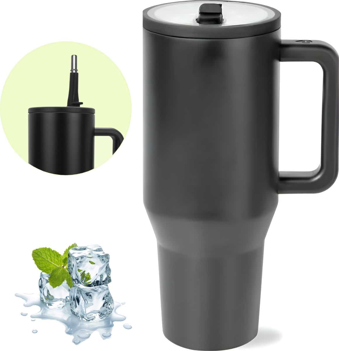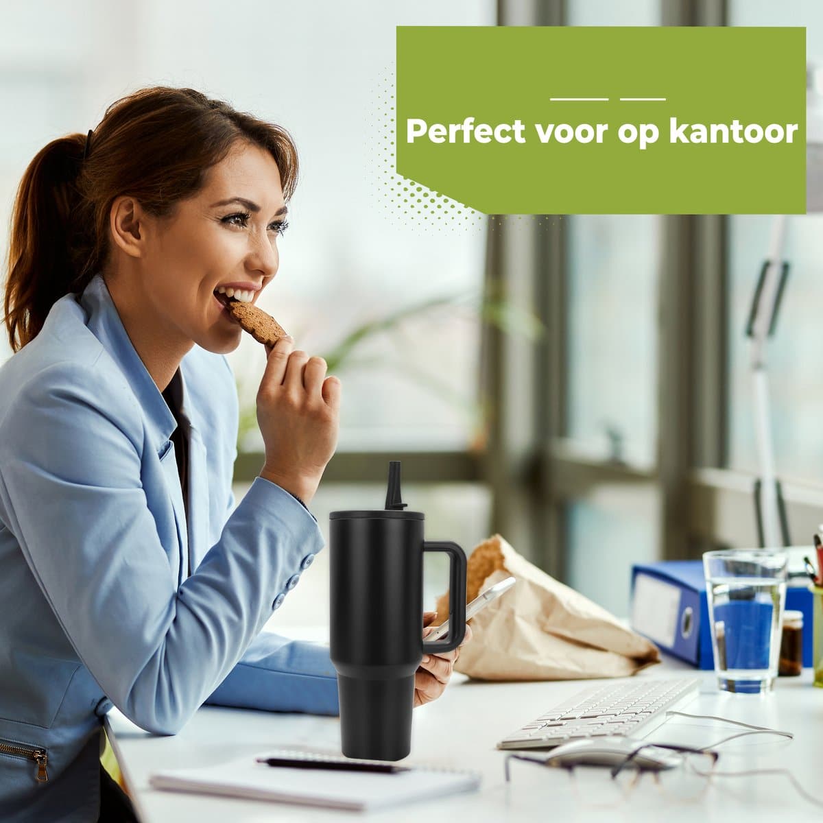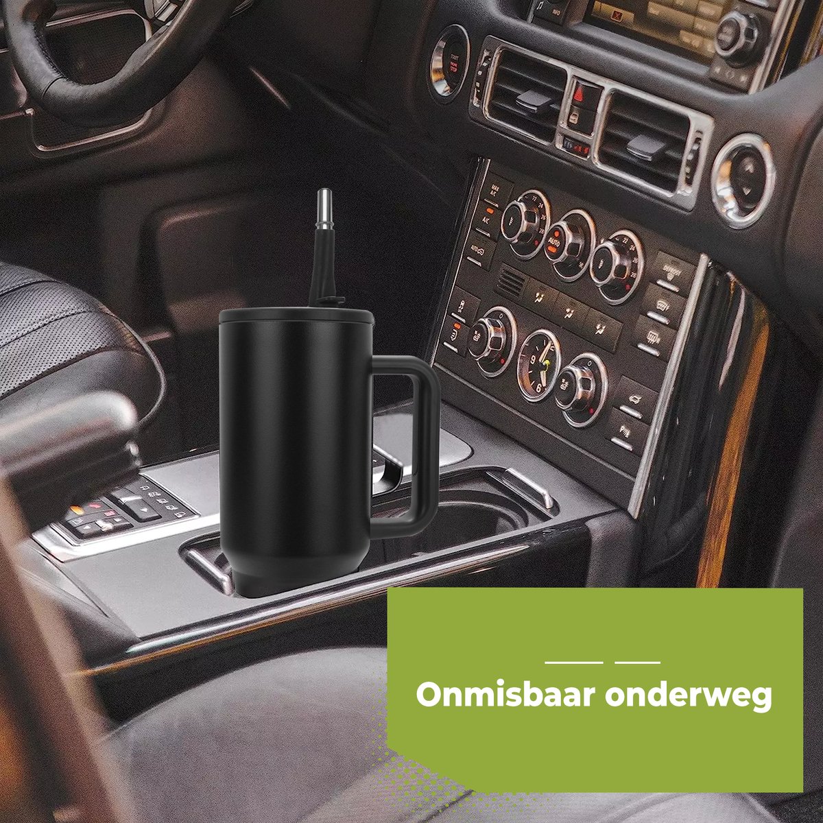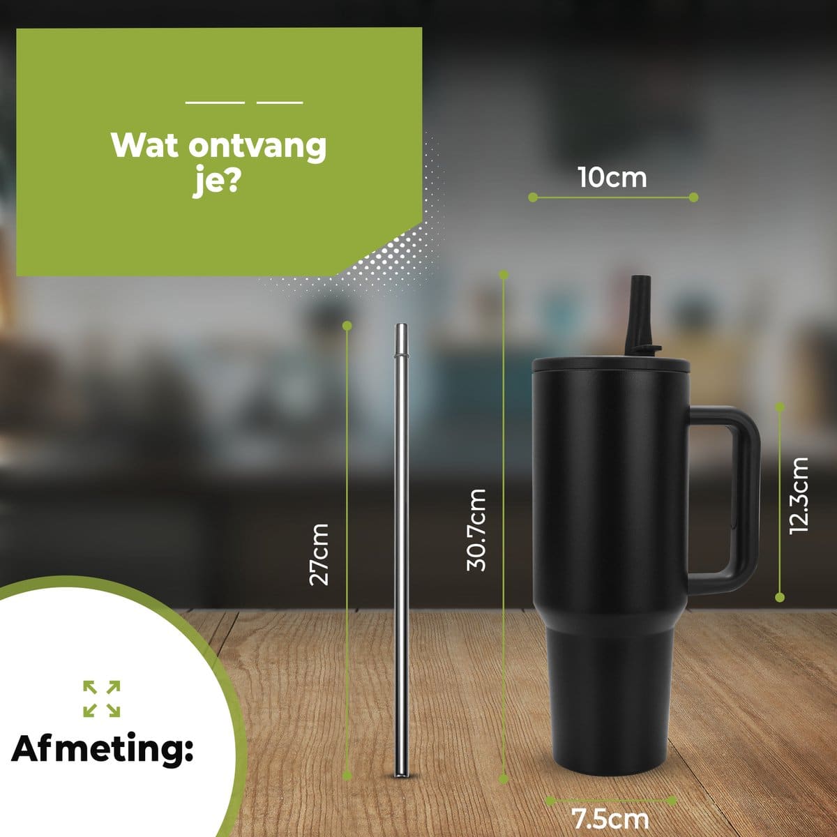 HI NATURE™ Luxe RVS Thermosbeker met Handvat en Rietje 1.2 liter (40oz) / Travel Cup – Tumbler Drinkfles – Waterfles – Dubbelwandige isolatie – Travel mug – Handige drinkbeker – Thermosfles – Thermoskan| Drinkflessen BPA- & Lekvrij (Zwart)