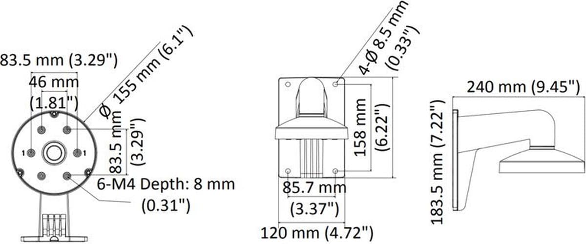 De Hikvision DS-1473ZJ-155 muursteun van aluminium is geschikt voor binnen of buiten muur montage.