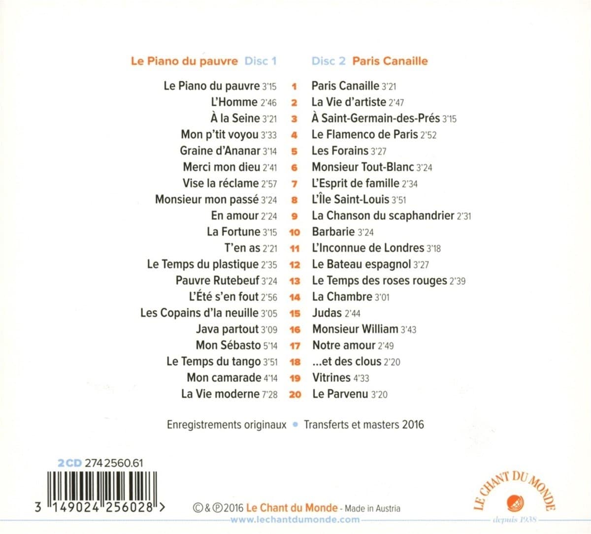 Le Piano Du Pauvre/Paris Canaille is een album van Léo Ferré uit 2016 en is uitgebracht onder het label Chant Du Monde