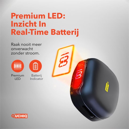 Dankzij het digitale LED-display weet je altijd precies hoeveel batterij je nog hebt. Zo kom je nooit voor verrassingen te staan!