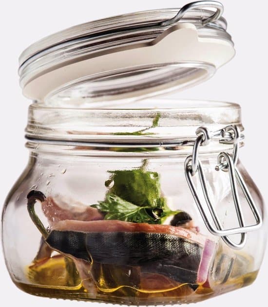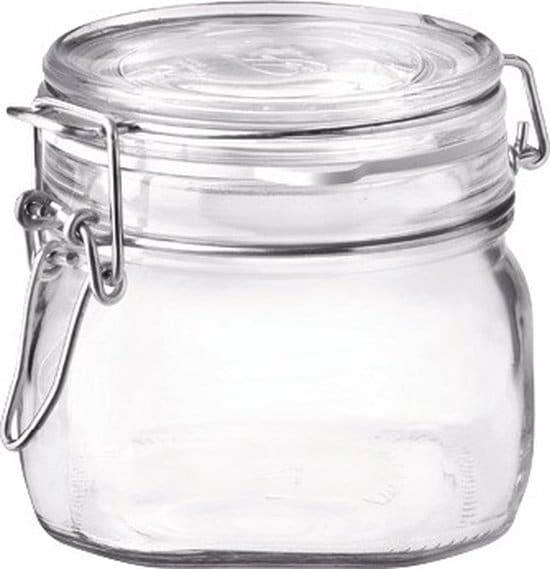 Zelf weer groenten, verse kruiden of ingrediënten opbergen was nog nooit zo leuk en vooral handig. Gebruik deze Fido weckpot van Bormioli Rocco en je etenswaren blijven voor een langere tijd vers. Deze weckpot is voorzien deksel met een scharnier. De rubberen ring zorgt ervoor dat het deksel de pot lucht- en lekdicht afsluit. Bovendien kun je met deze weckpot ook een prachtig decoratiestuk maken voor in huis. Deze Fido weckpot heeft een inhoudsmaat van 50 cl.