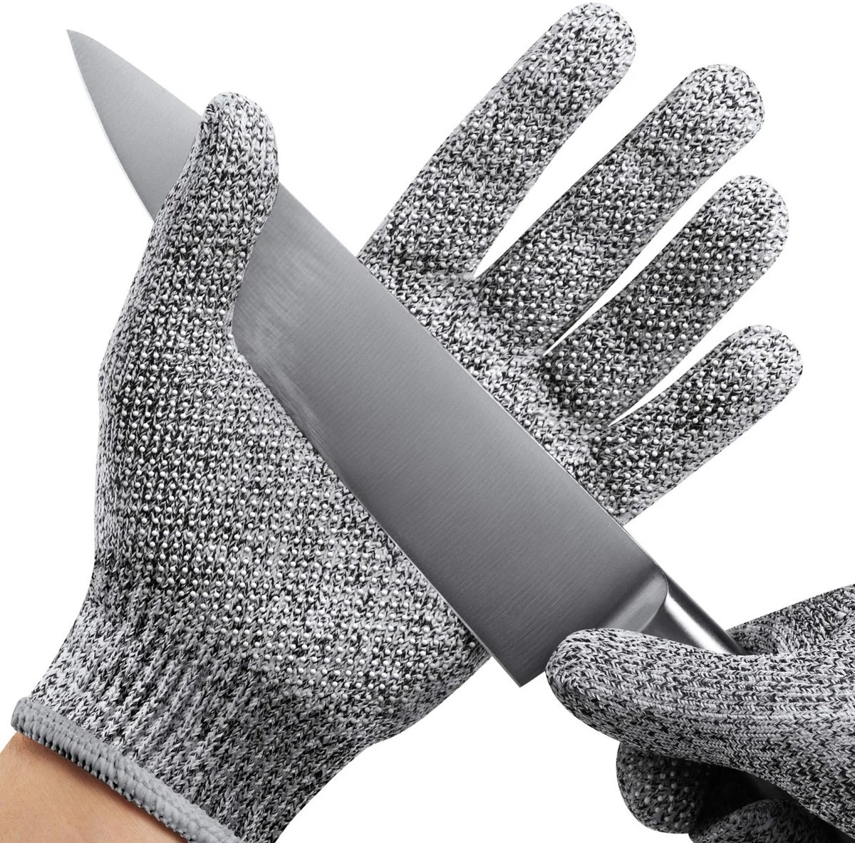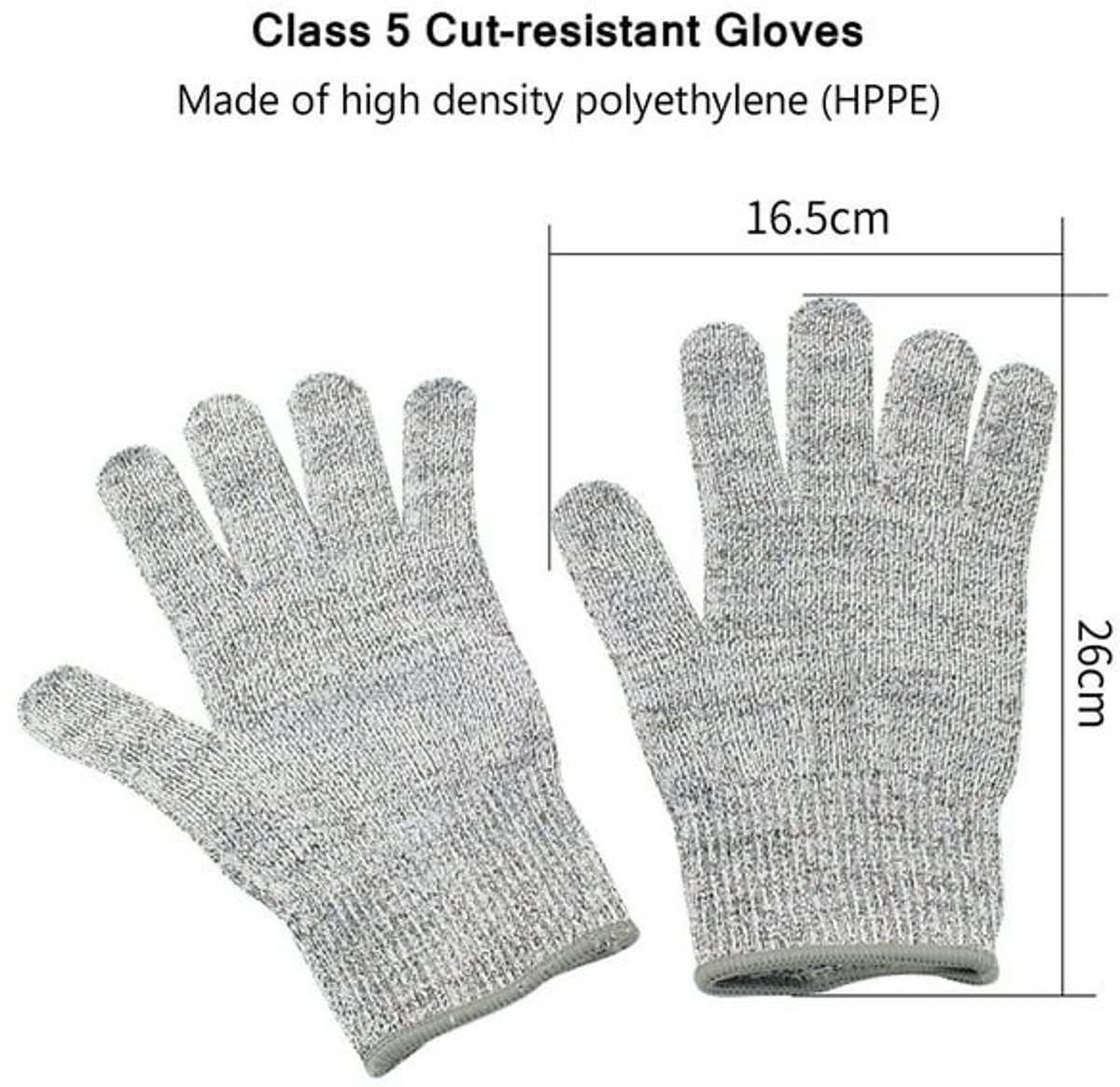 Met deze handige snijwerende handschoenen klasse 5 werk je voortaan een stuk veiliger. De grijze handschoen is gemaakt van geweven kunststof en beschermt tegen snijwonden. Perfect als keukenhandschoenen, oesterhandschoenen, slagershandschoenen maar ook als werkhandschoenen of in de tuin. De handschoenen zijn geurloos en wasbaar in de wasmachine op 30 graden.