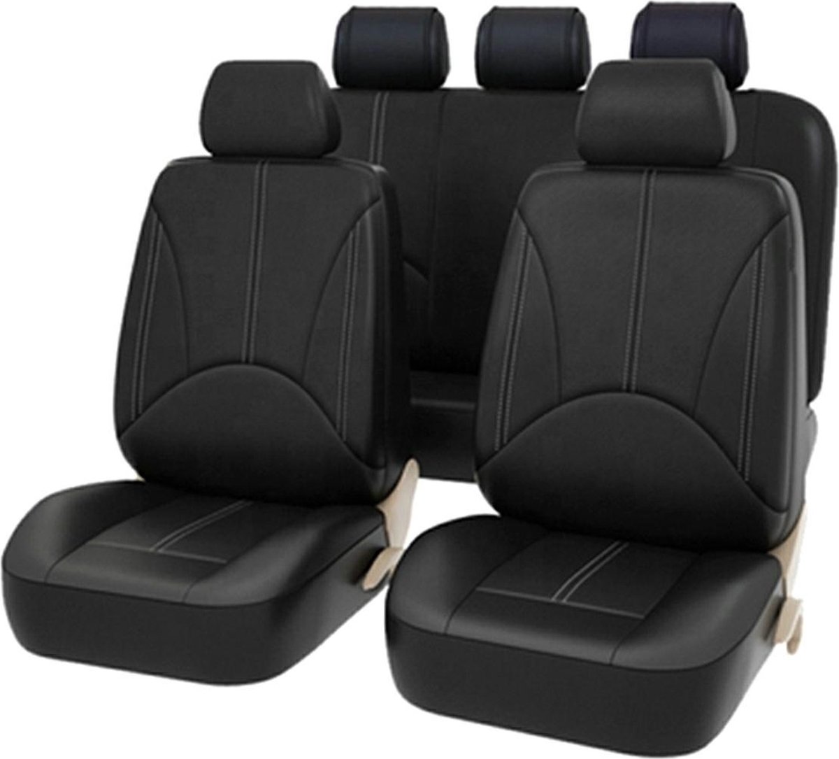 Universele stoelhoezen auto Eco Kunst Leer – Zwart – Stoelhoes voor in de auto – Complete set – Stoelhoezenset